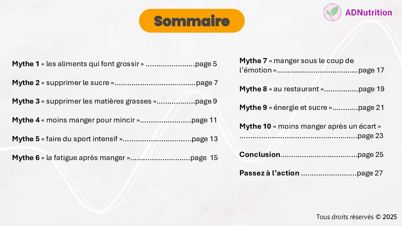 Marre d’entendre tout et son contraire ? Ce dossier spécial vous aide à distinguer le vrai du faux. Non seulement je brise les mythes les plus tenaces, mais surtout je vous donne les méthodes réelles et durables et des vérités claires, pour vous aider à reprendre le pouvoir sur votre alimentation, avec liberté et confiance.